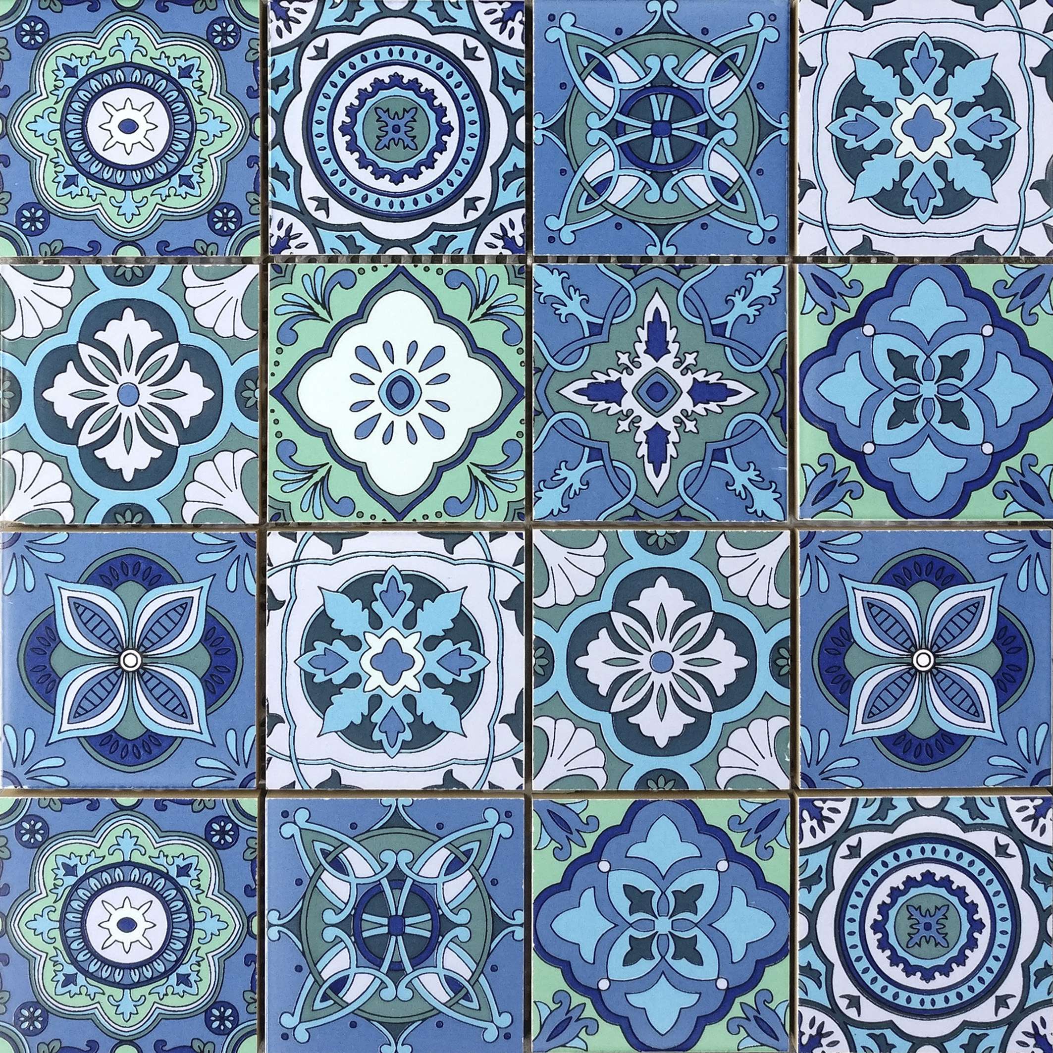 Patchwork Square Blue Mix White 11.8×11.8 CEBL18