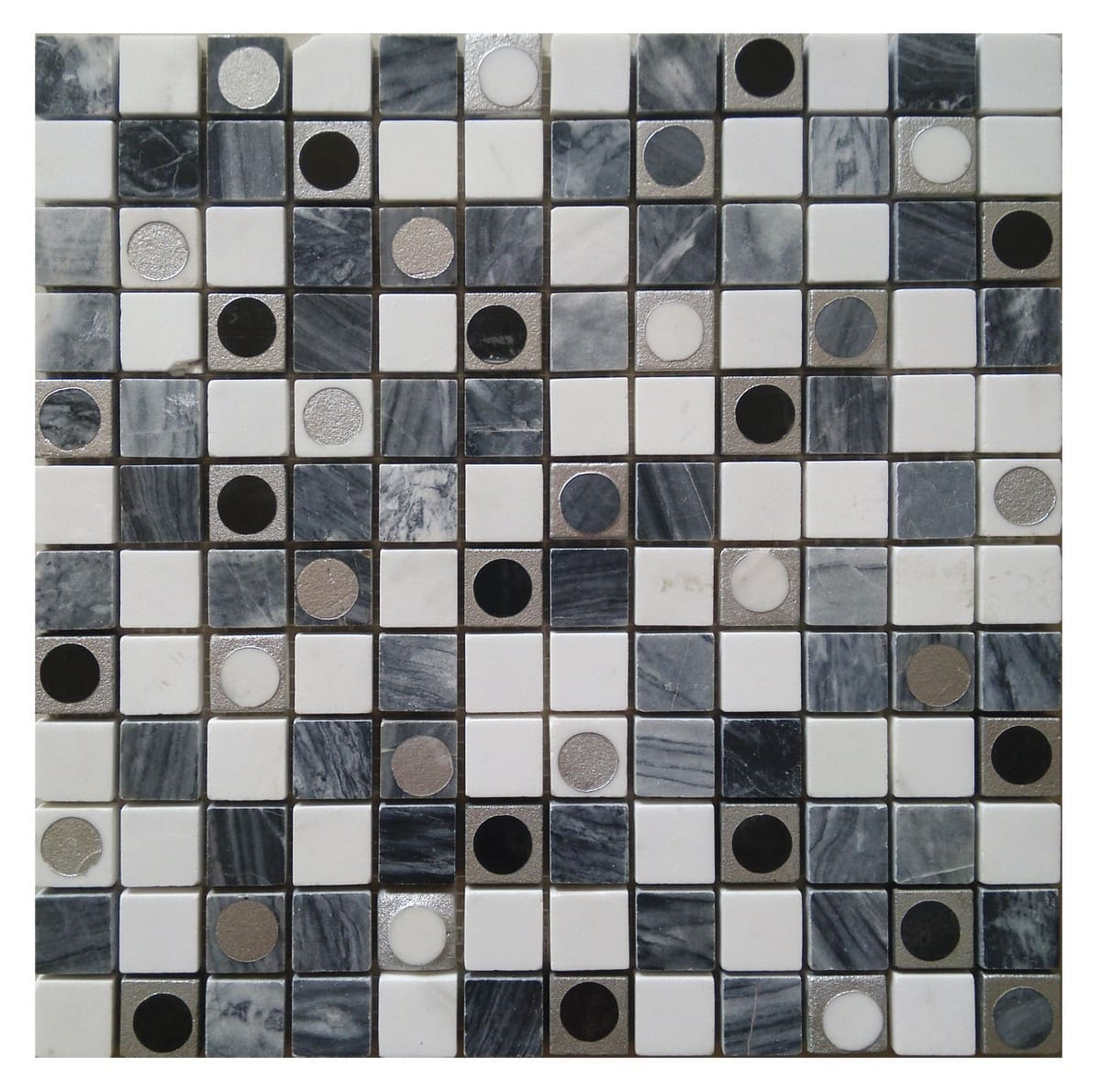 Black White Grey Marble Mix Round Deco 1×1 MAGR106