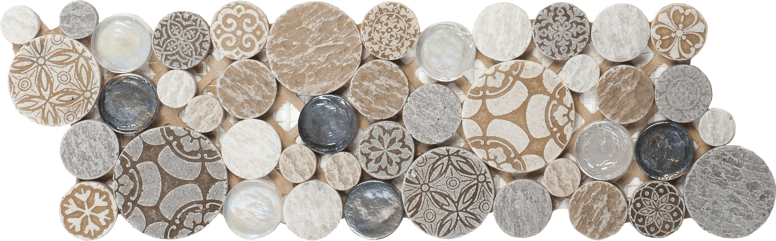 Beige Penny Round Décor Glass Border 4×12 MAMI104