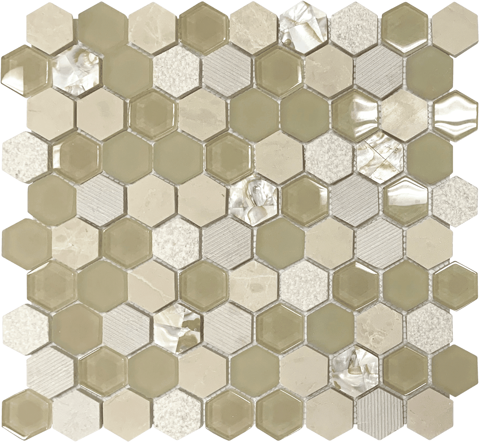 Hexagon Glass Marble & Mother of Pearl Beige Mix MAMI174