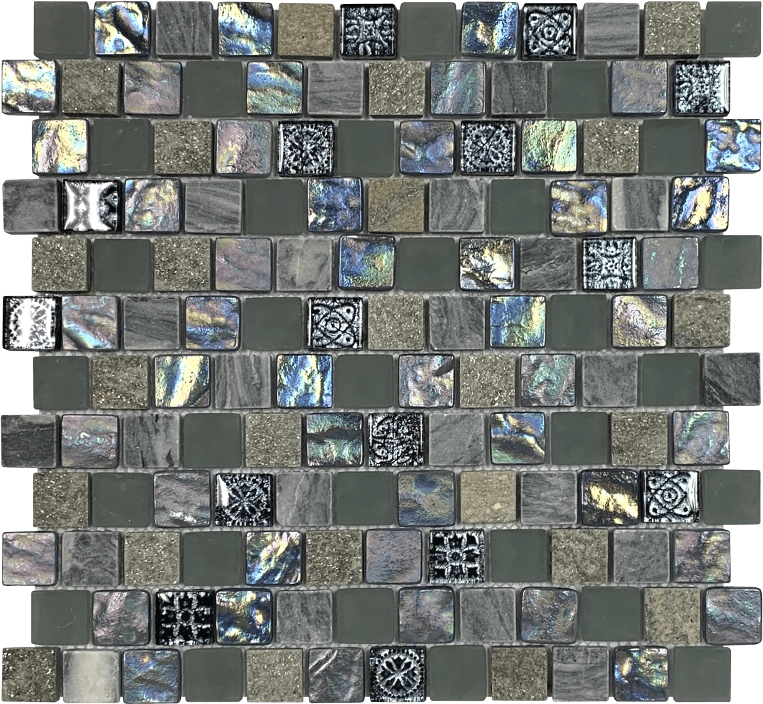 Grey/Green/Beige Mix Stone Glass Mosaic VEMI138