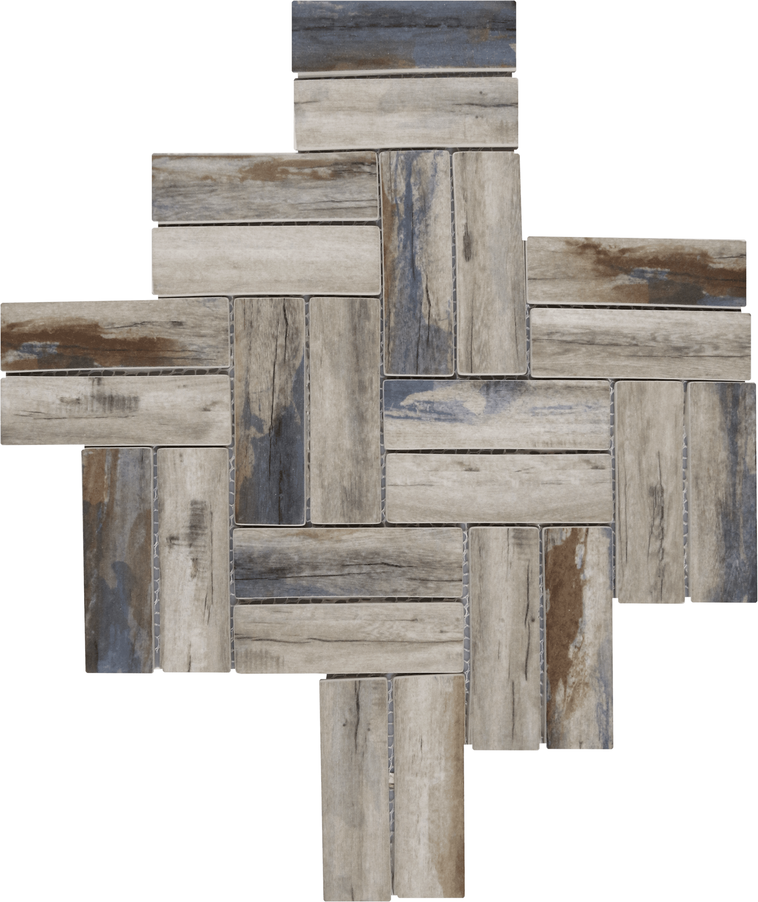 Herringbone Wood Look Beige Brown Blue Matte VEMI145