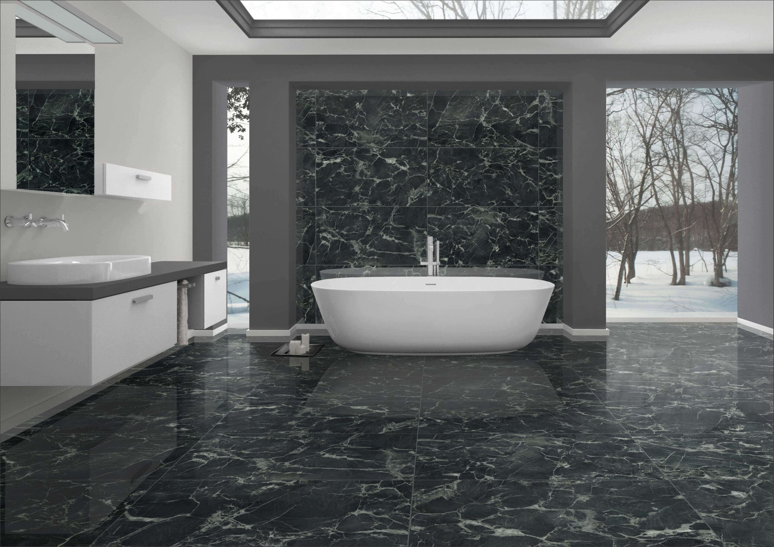 Rectified porcelain tile made in Italy.