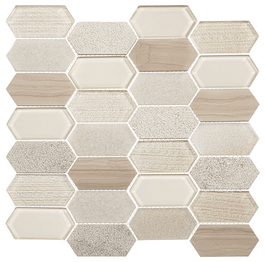 Tile Size: 1 1/2 x 3 1/2 ” Hex