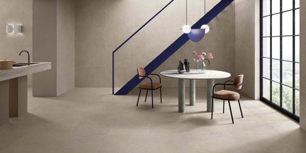Rectified full-body porcelain tile made in Italy.