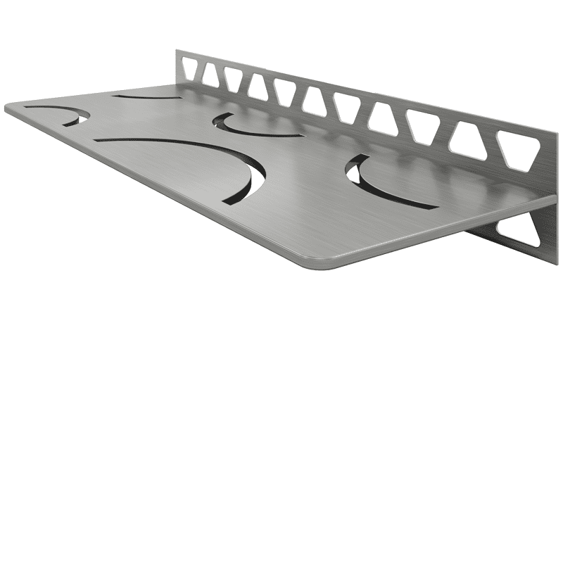 The Schluter®-SHELF-E is a corner shelf designed for tiled walls.