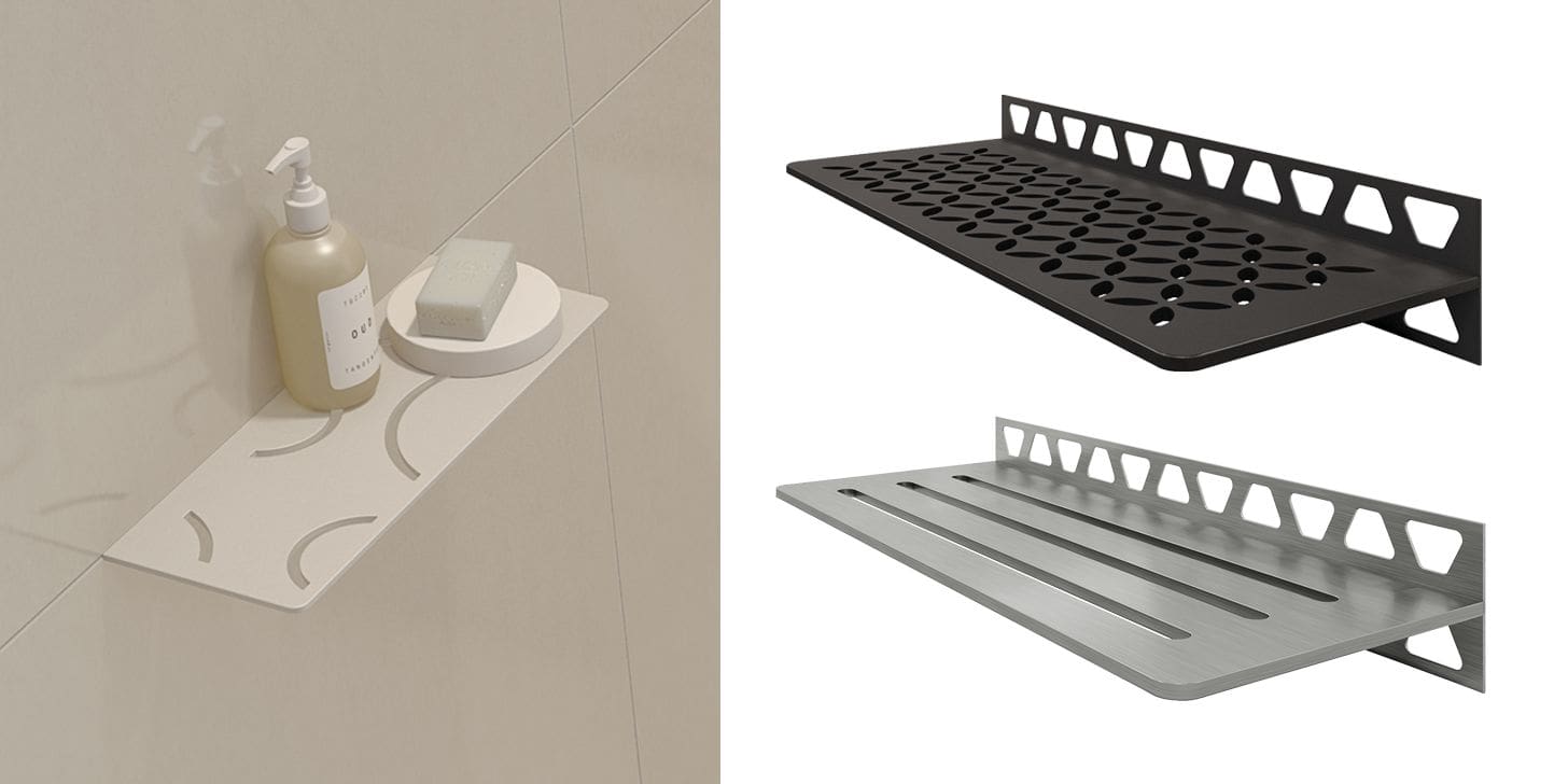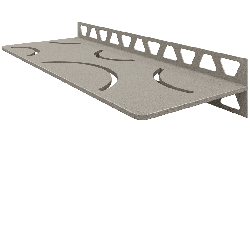 The Schluter®-SHELF-E is a corner shelf designed for tiled walls.