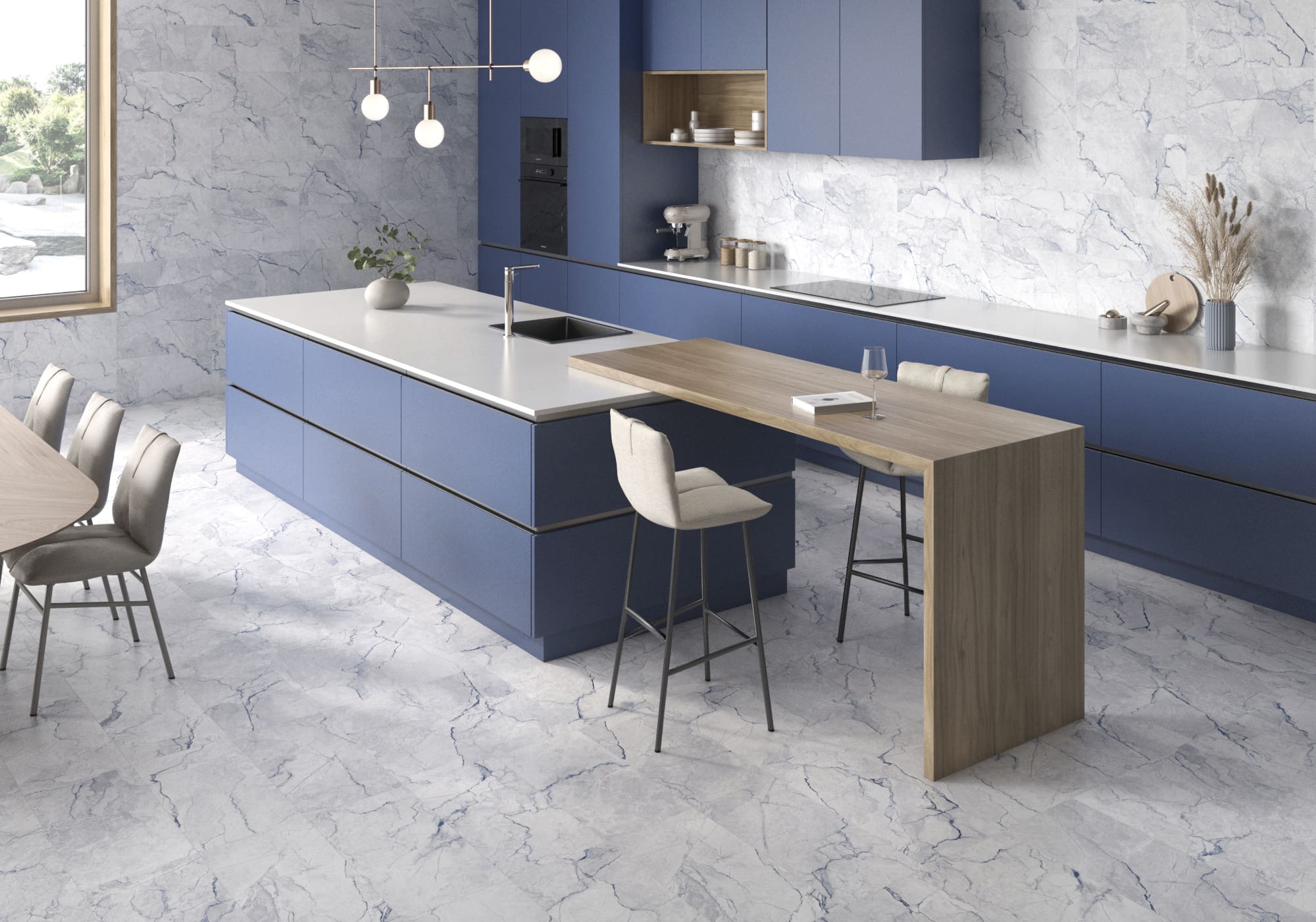 Marble is celebrated as the epitome of elegance and purity. In our Statik porcelain collection, classic beauty merges seamlessly with modern allure, highlighted by warm gold veining and captivating blue tones. Explore an array of sizes and finishes, from natural to polished, available in four refined colors tailored to match your unique style. Elevate your space with coordinating hexagonal and 2×2 mosaic tiles, effortlessly infusing your floors and walls with a timeless, graceful ambiance.
